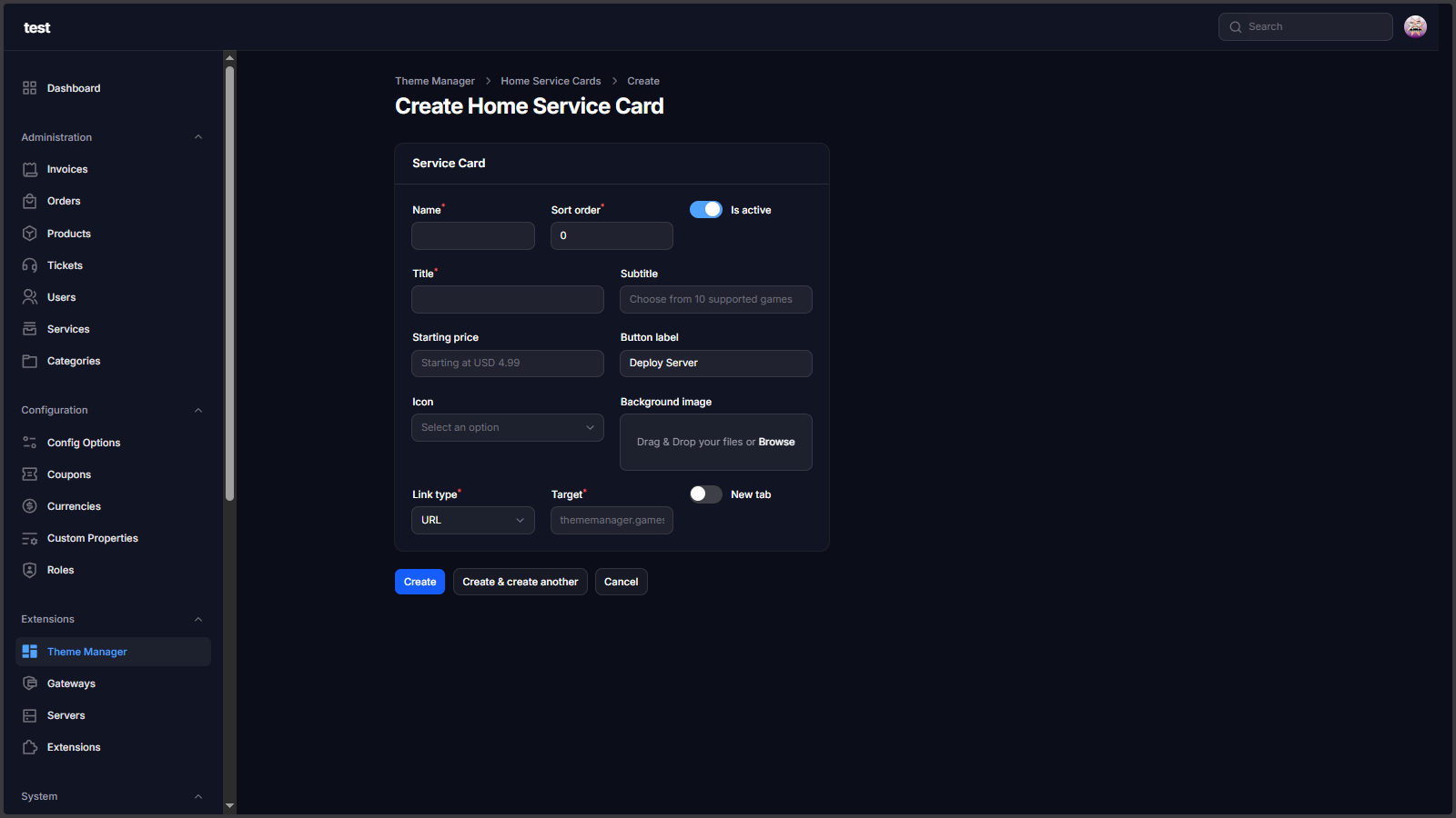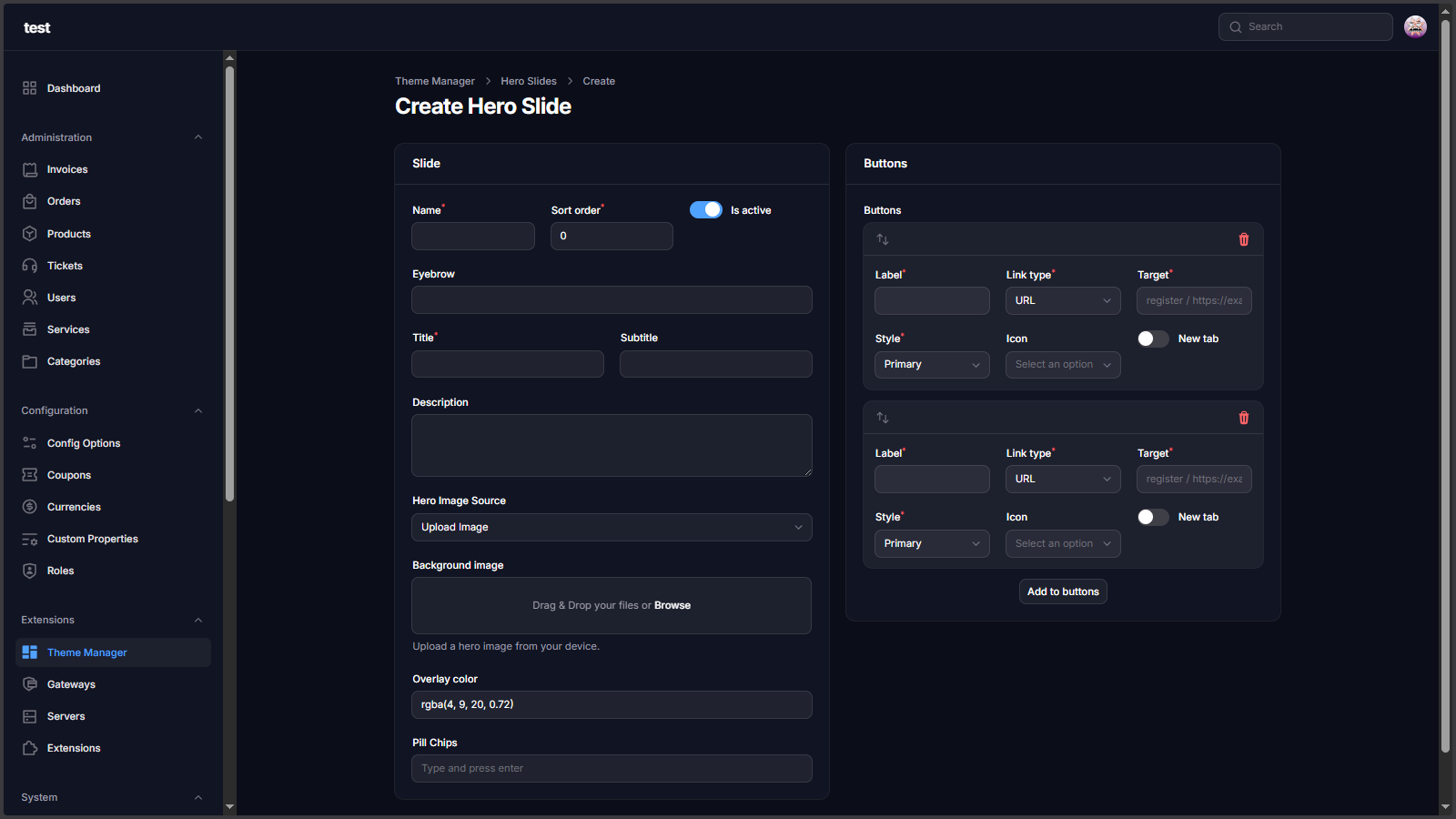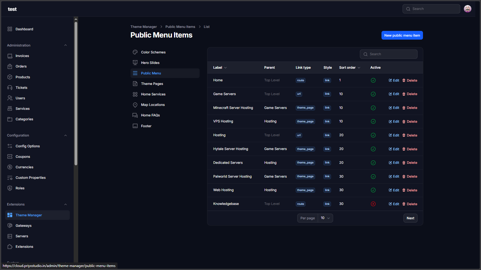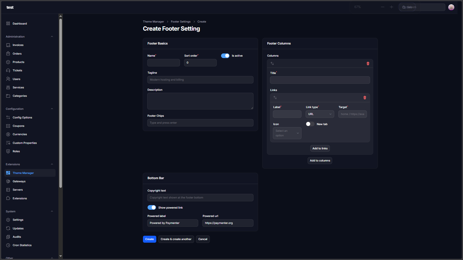 Theme Manager Extension is a complete storefront control layer for Paymenter. It lets you manage hero sliders, public navigation, footer blocks, homepage sections, color schemes, and custom landing pages from admin without editing Blade files for every content update.