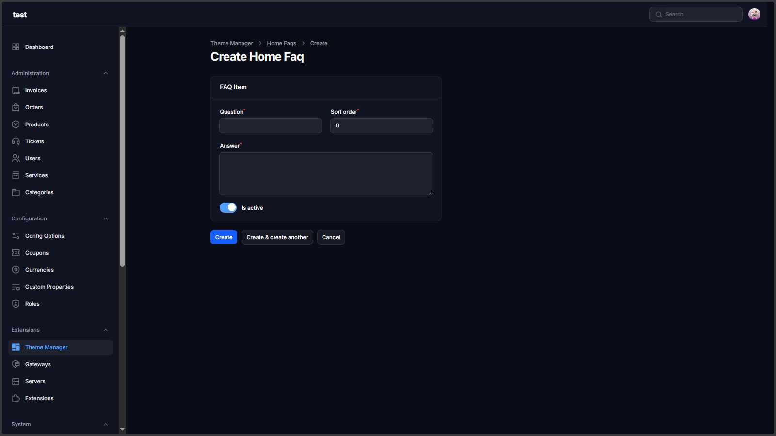 - Homepage FAQ manager