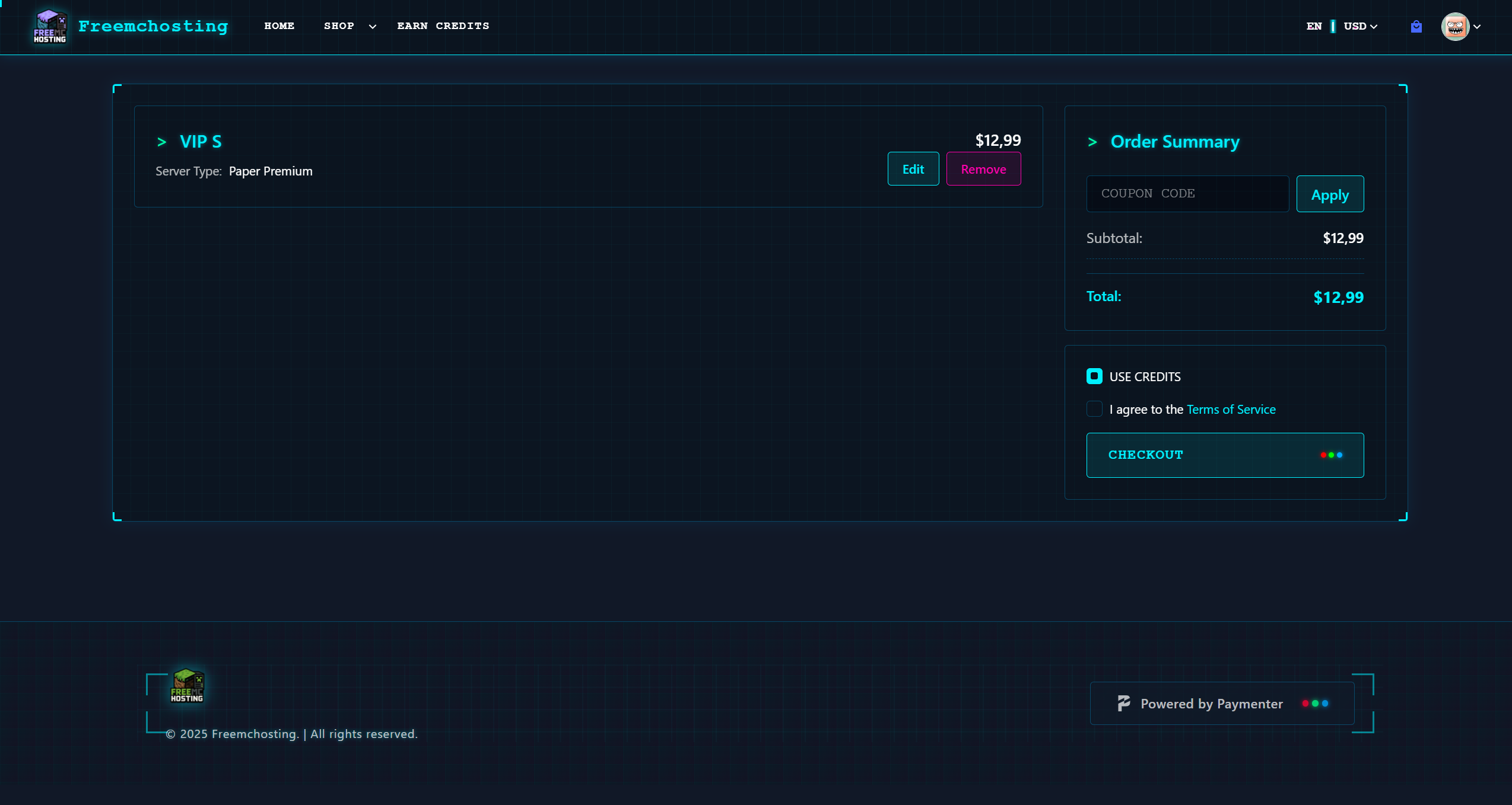 Paymenter β the open-source billing and service panel for game server hosting. With a sleek dark layout, vibrant teal accents, and a digital grid aesthetic, this template delivers a high-tech feel that's perfect for tech-savvy audiences, especially in the Minecraft and game server hosting space.
