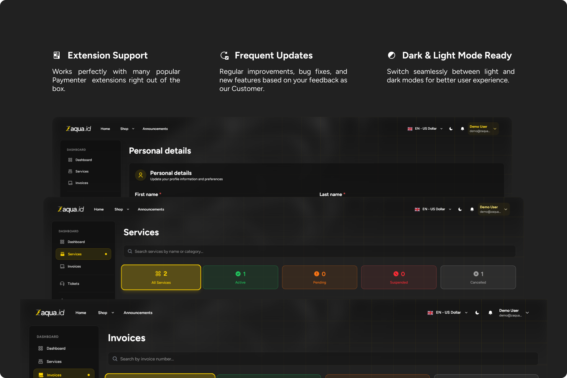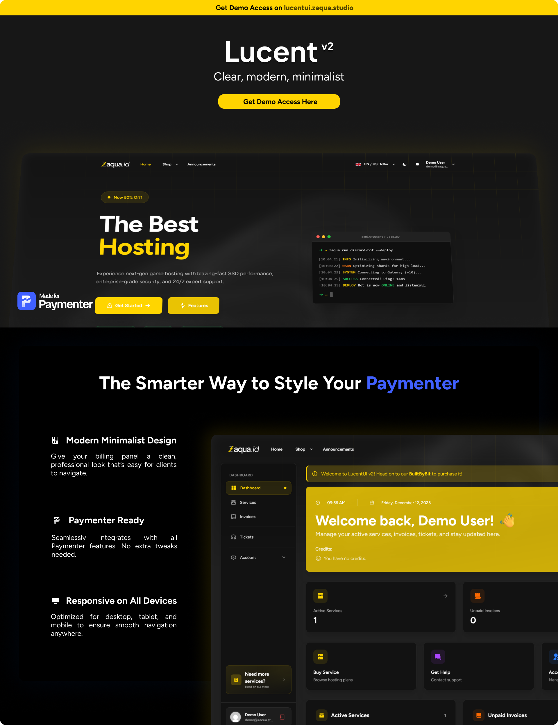 Whether you're hosting game servers or building your own dashboard, LucentUI elevates your Paymenter instance to a whole new level of professionalism.