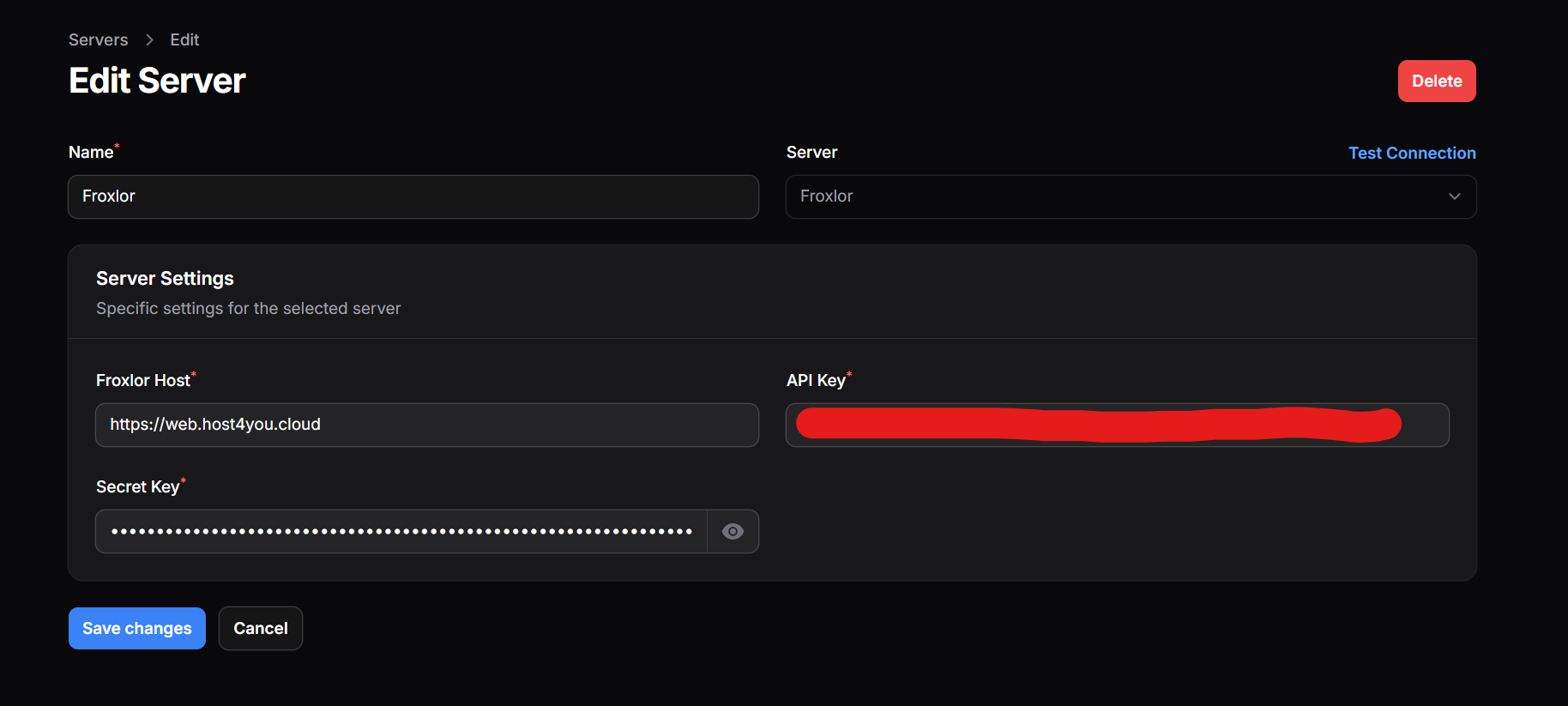 Remember to put your url (Froxlor Host) without the / at the end!Some Image