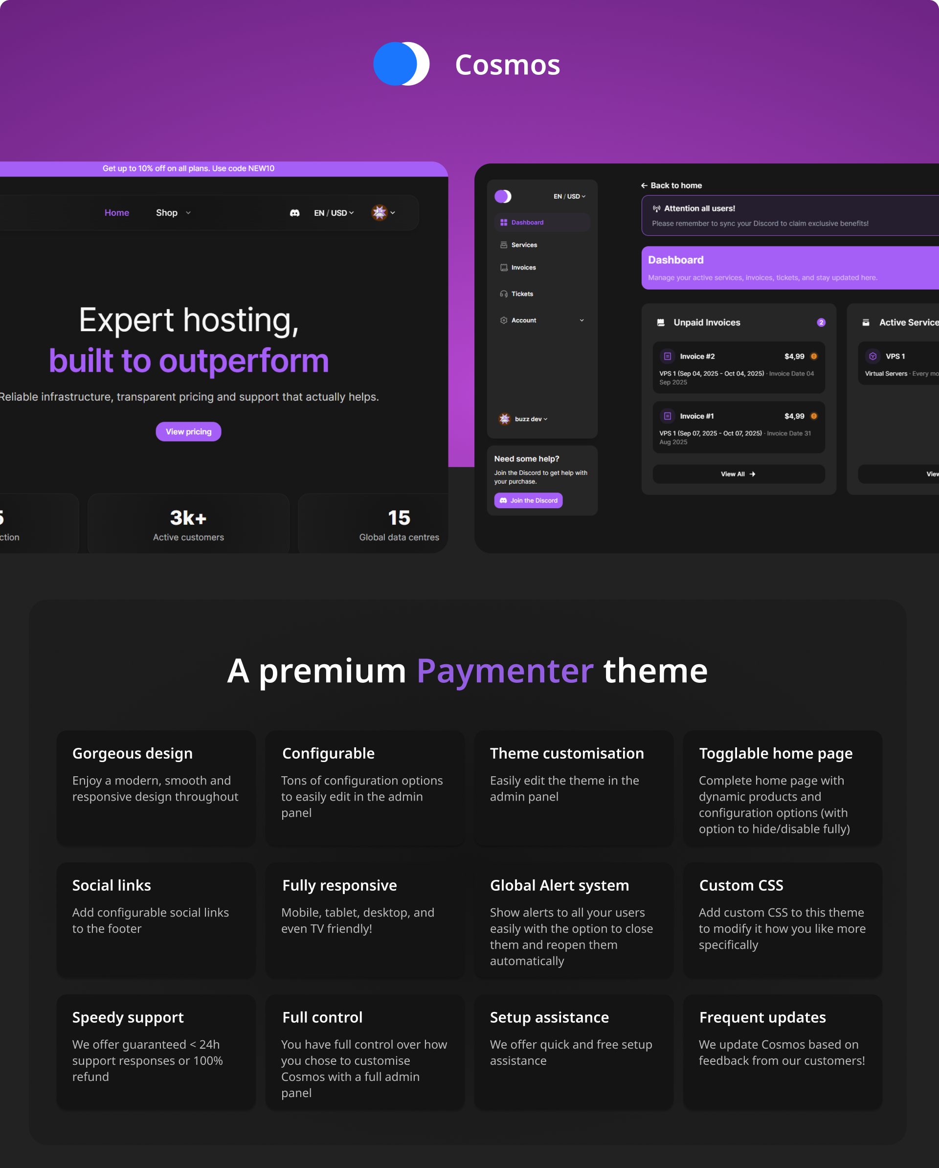 Ultra-customisable, unique design, extra functionality, guaranteed < 24h support responses