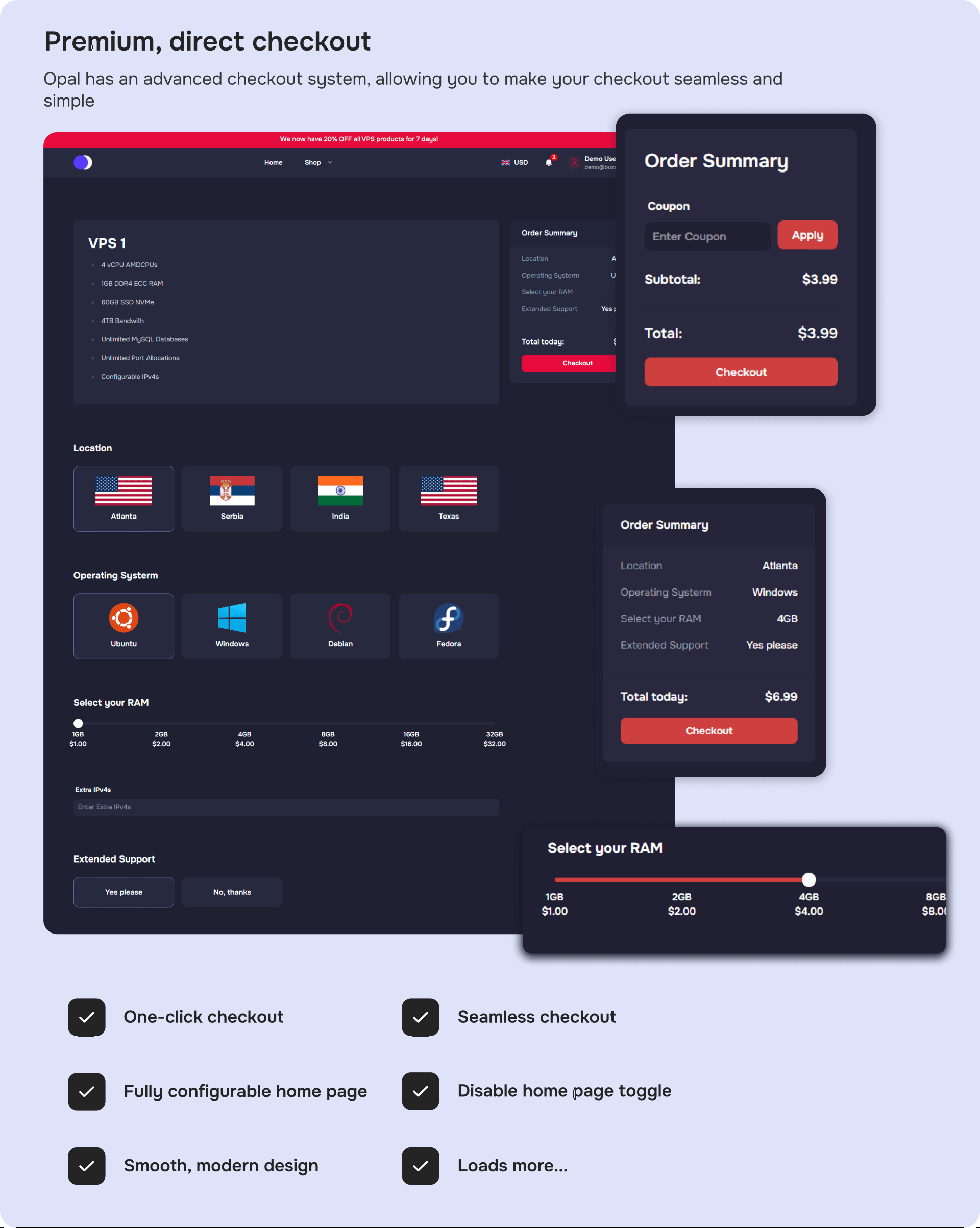 Advanced checkout, very customizable, editable home page & more - guaranteed < 24h support responses
