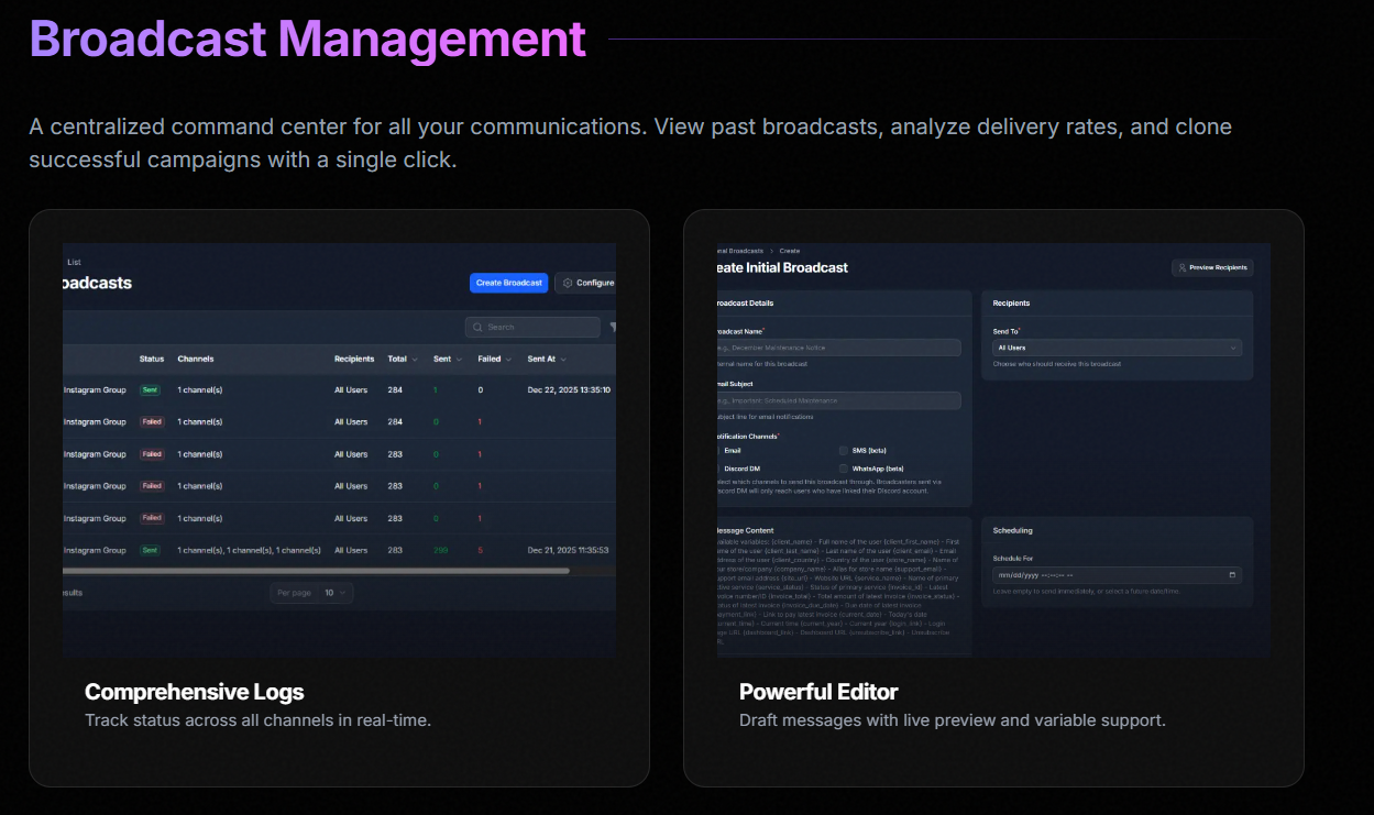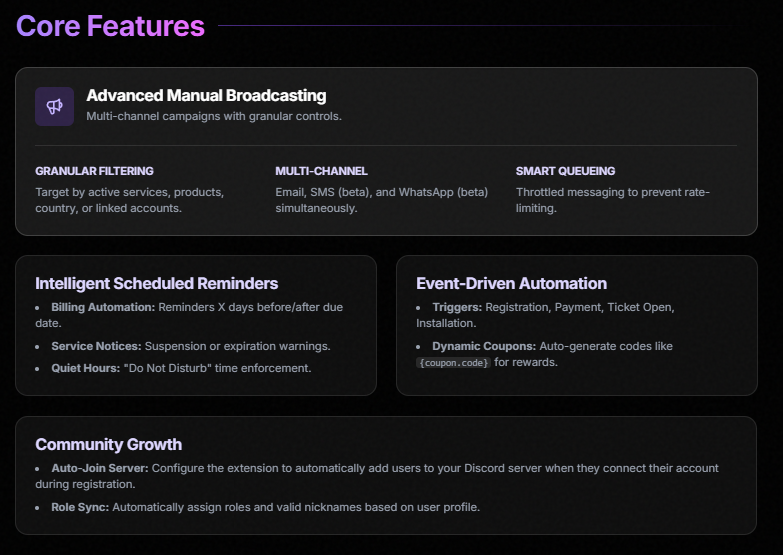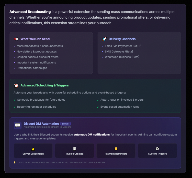 Advanced Broadcasting allows admins to send news to user emails, and setup custom triggers.