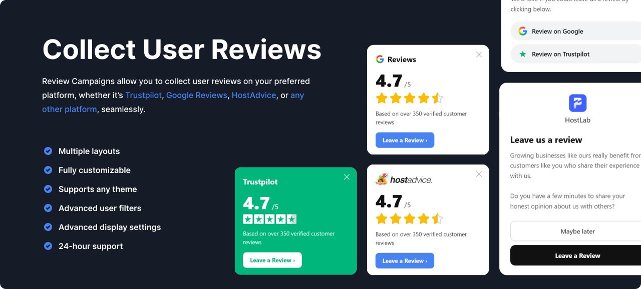 Collect user reviews on your preferred platform seamlessly.