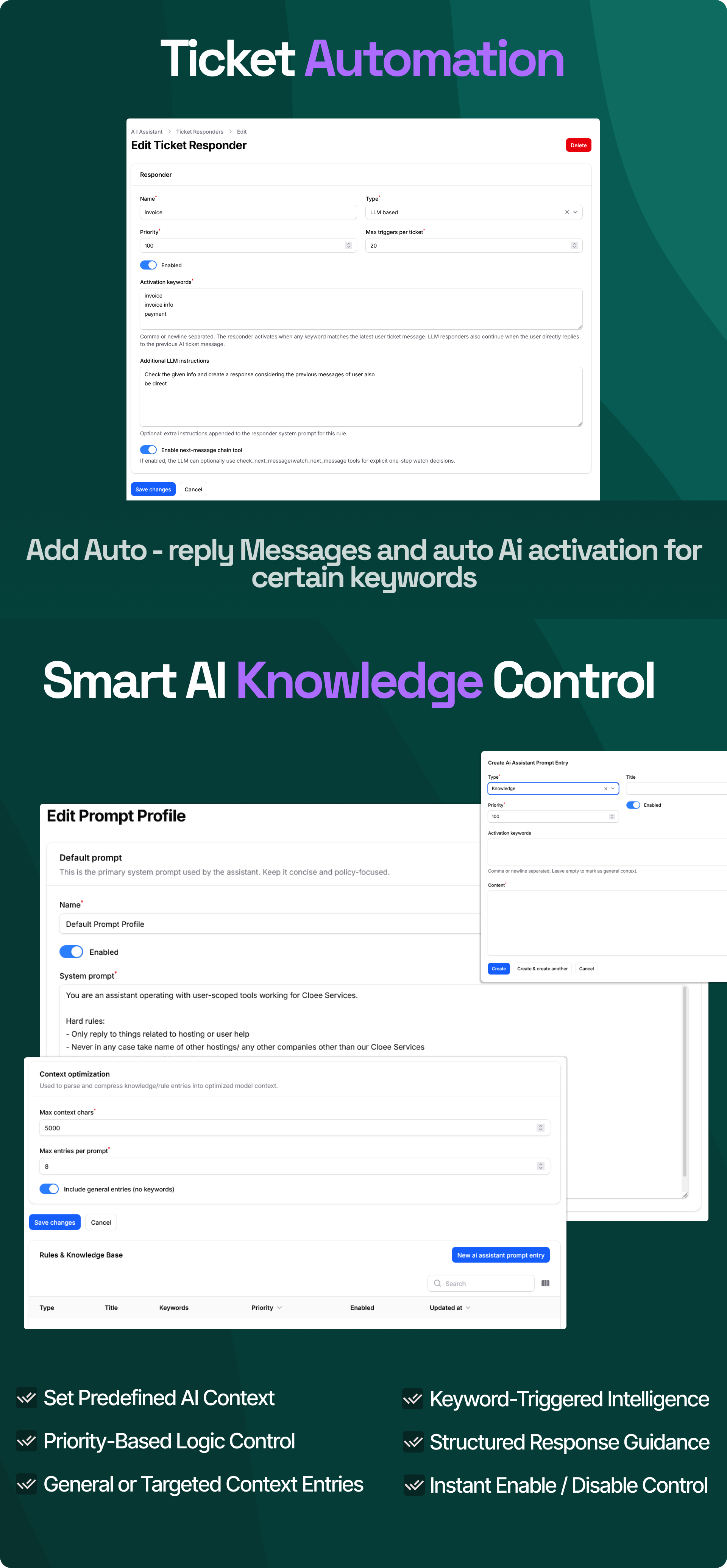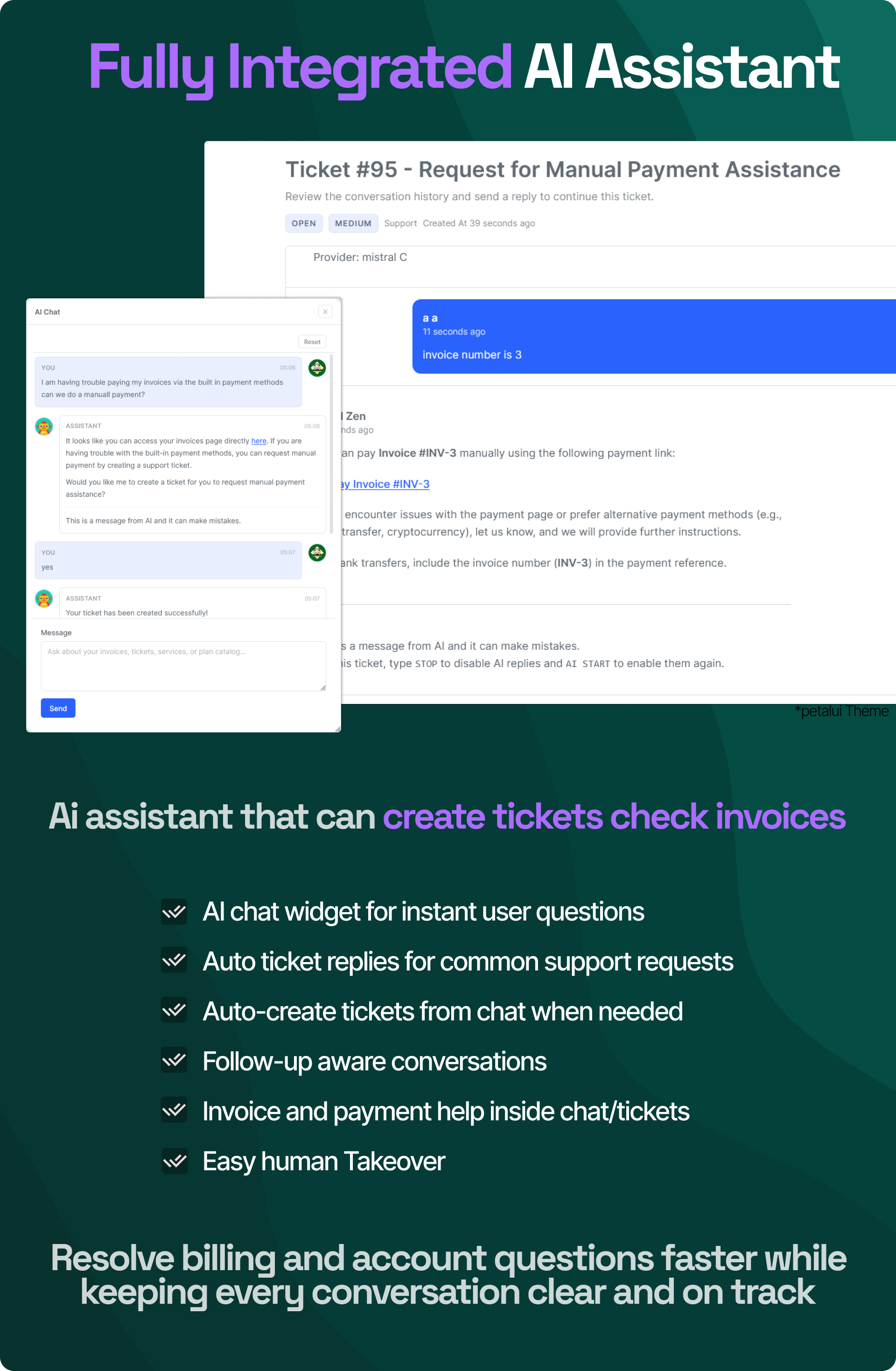 Auto reply tickets, check invoices and more